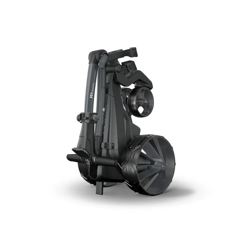 De Motocaddy M7 Remote 2026 is een elektrische golftrolley met afstandsbediening, ontworpen voor comfortabel en gecontroleerd gebruik op de baan. Het model heeft een vernieuwd design met sportieve 10-spaaks wielen en ergonomische handgrepen. Via het 2,8 inch LCD widescreen display heb je overzicht over onder andere snelheid, batterijstatus en afstandsmetingen.